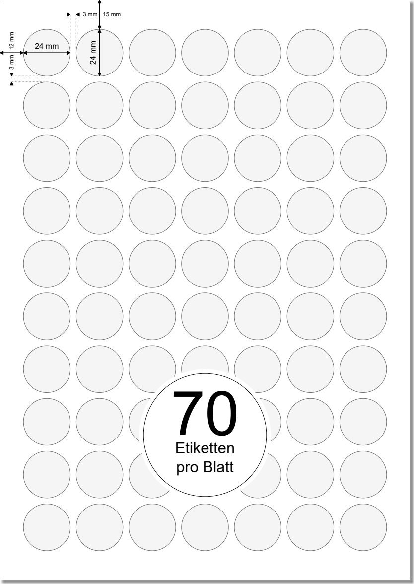 PRINTATION Folien-Etiketten matt transparent Durchmesser 24mm 10xA4 à 70 Eti.