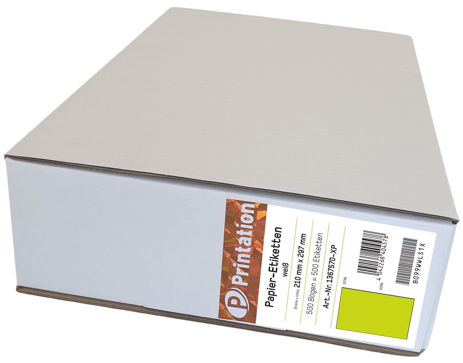 PRINTATION Papier-Etiketten (B210xH297mm=A4) 500xA4 à 1 Eti.