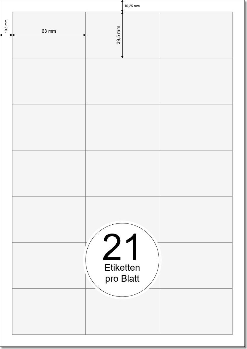 PRINTATION Papier-Etiketten (B63xH39,5mm) 25xA4 à 21 Eti.