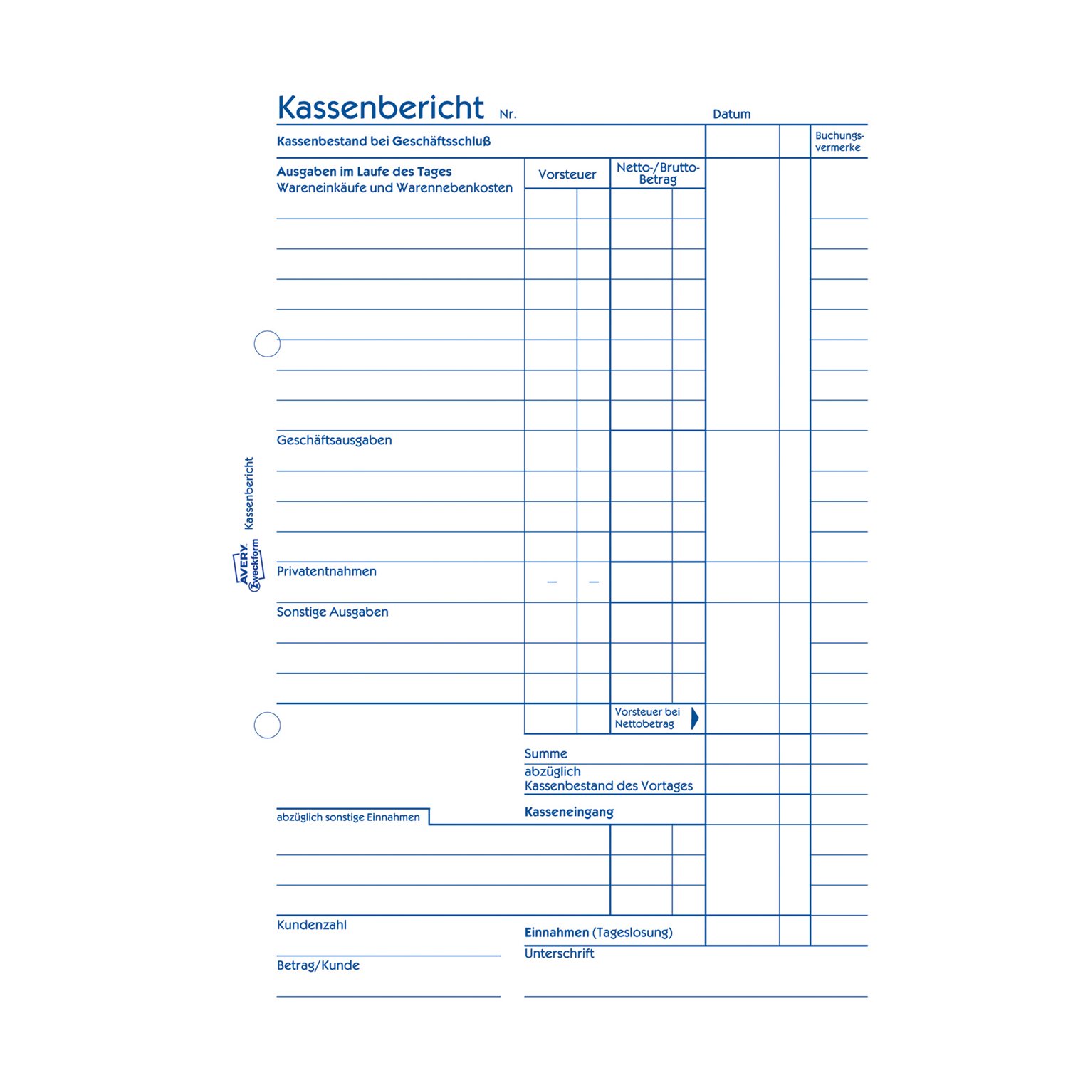 Formularblock Kassenbericht A5 50 Blatt Avery Zweckform (Nr. 305)