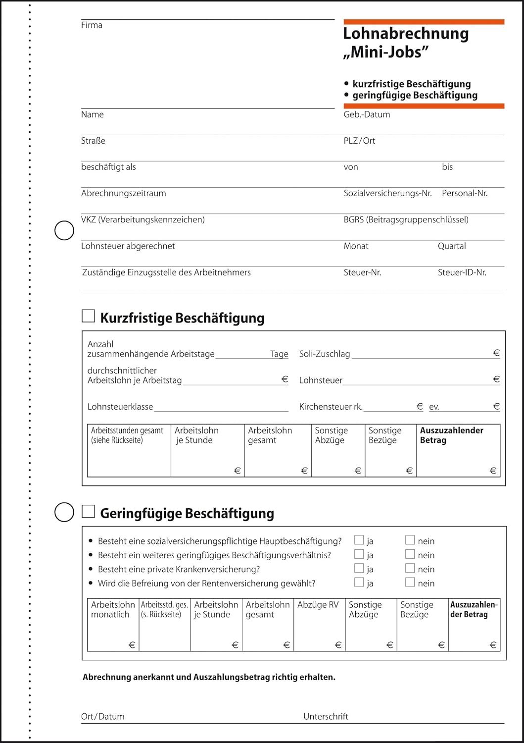 Formularblock Lohnabrechnung für Mini-Jobs A5 50 Blatt Sigel holzfreies Papier
