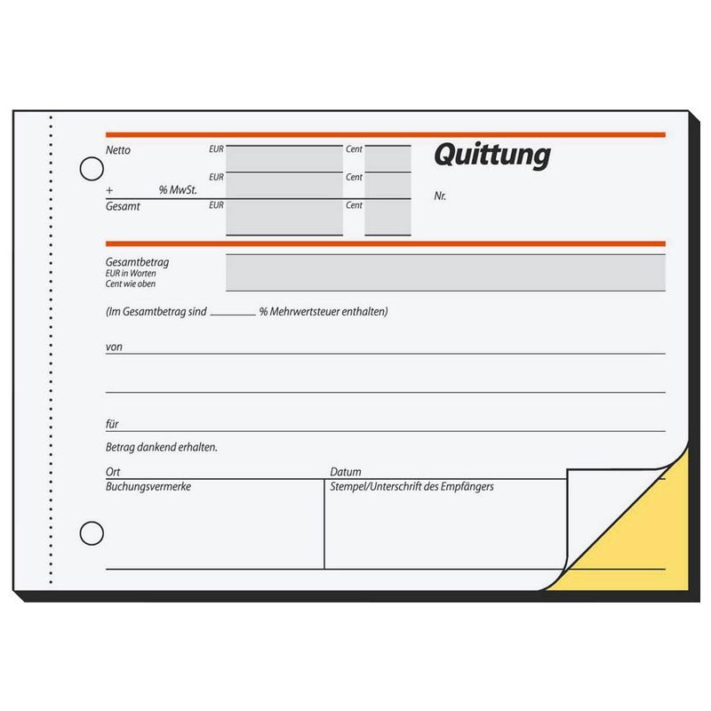 - selbstdurchschreibendes Quittungs-Formular, Format A6 quer, mit MwSt.-Nachweis