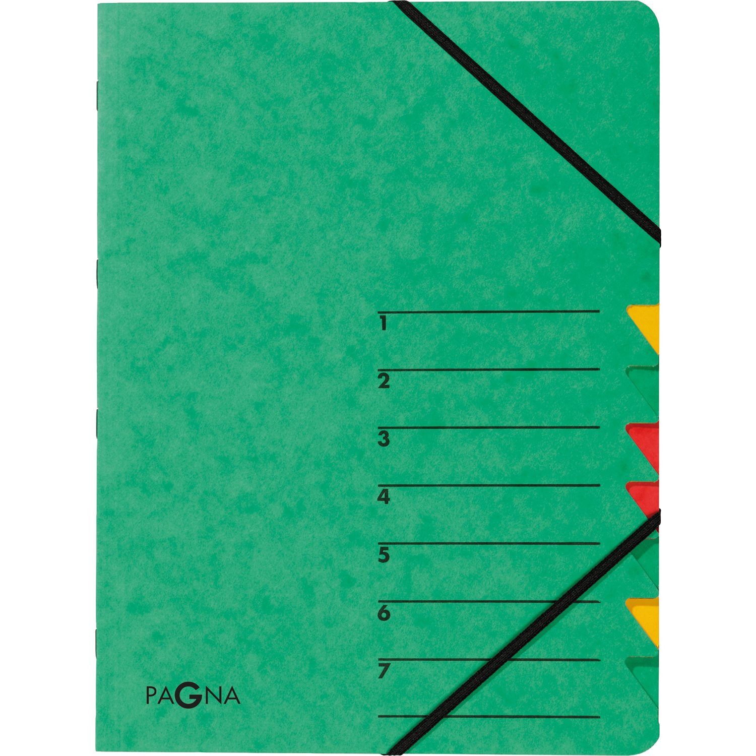 Eigenschaften: "Ordnungsmappe 7 Fächer grün PAGNA mit 2 Gummizügen für DIN A4"