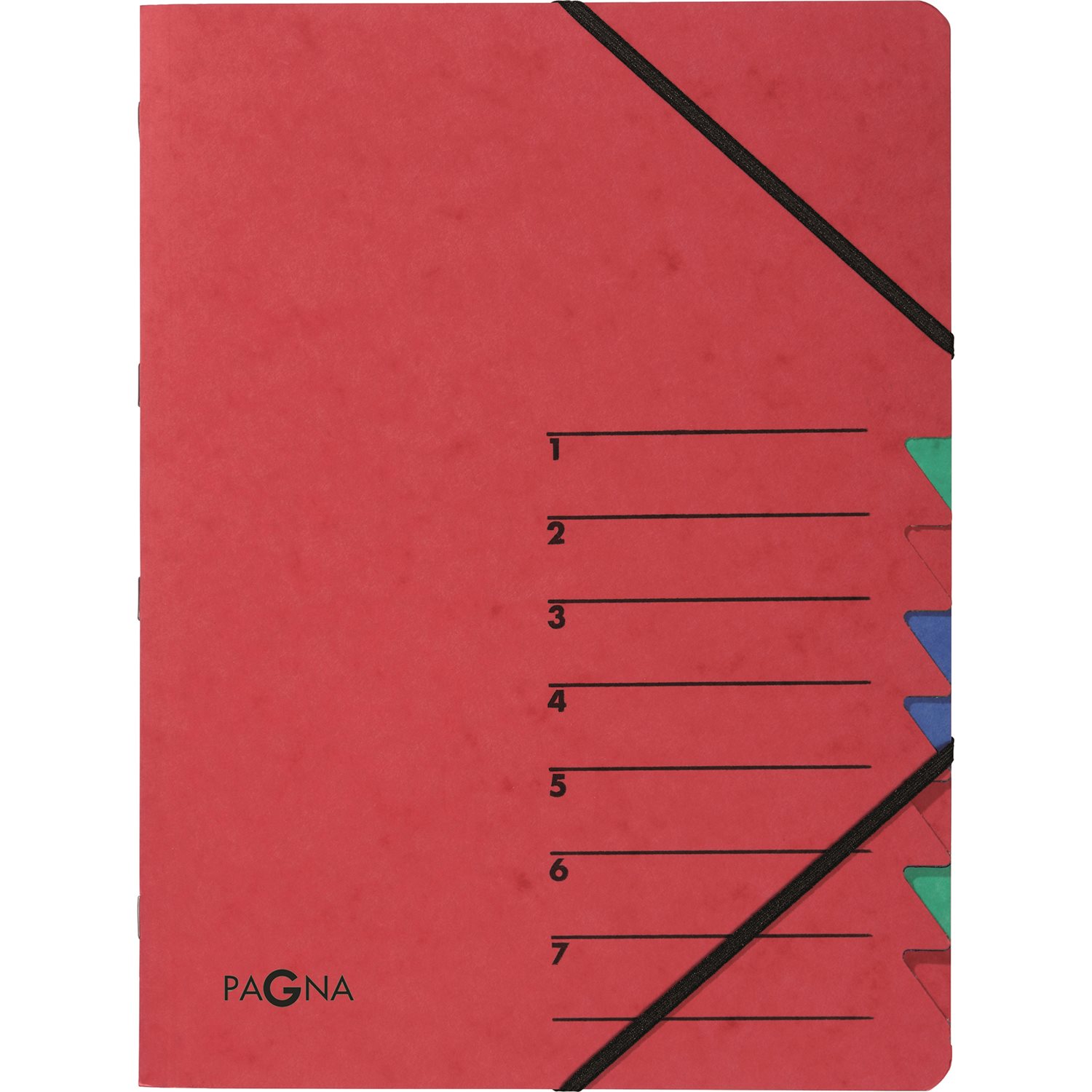 Ordnungsmappe 7 Fächer rot PAGNA mit 2 Gummizügen für DIN A4