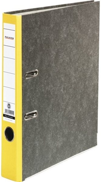 Eigenschaften: "Ordner A4/5cm Pappe gelber Rücken Falken Recycling mit Kantenschutz"
