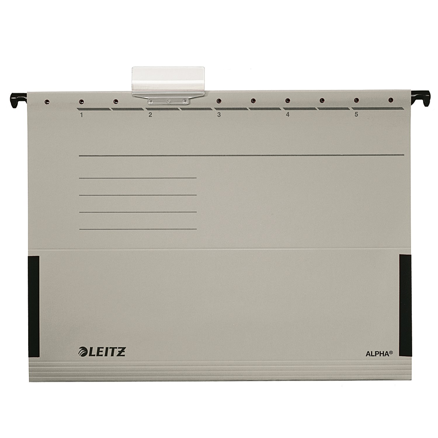 Eigenschaften: "Hängetasche A4 mit Leinenfröschen grau Karton ALPHA Leitz"