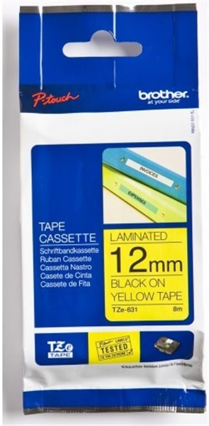 Original Beschriftungsband Brother TZe-631, 12mm x 8m, schwarz auf gelb