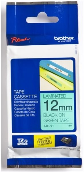Original Beschriftungsband Brother TZe-731, 12mm x 8m, schwarz auf grün